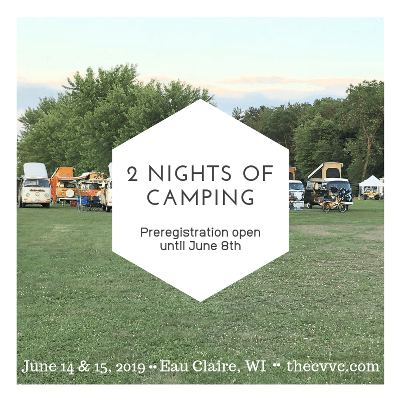 2 nights of camping! You are 5 minutes away from being registered! Click here now. Share this: Click to share on X (Opens in new window) X Click to share on Facebook (Opens in new window) Facebook More Click to email a link to a friend (Opens in new window) Email Like Loading... Related Published by Chippewa Valley Volkswagen Club, Inc. (CVVC) The CVVC is a grassroots not-for-profit club for Volkswagen enthusiasts run by volunteer enthusiasts in the Chippewa Valley of Wisconsin, USA. View all posts by Chippewa Valley Volkswagen Club, Inc. (CVVC)