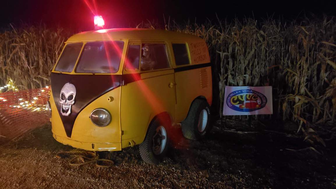 Happy Halloween season all you Volkswagen fanatics! This year, the CVVC collaborated with Twisted Tales of Horror at Govin’s Farm in Menomonie, WI to inject a little VW flair to one of their dynamic haunted scenes. Check out their website for details (GovinsFarm.com) and make a plan to get there one of these beautiful October weekends! The Twisted Tales of Horror is a trail separate from the Corn Maze and other kid-friendly farm activities. Admission for the haunted trial only is $10+tax per person and open every Friday and Saturday night in October 6pm to 10pm (last ticket sold at 9:30pm). You must be age 14 or over to go through the trial or be accompanied by an adult.