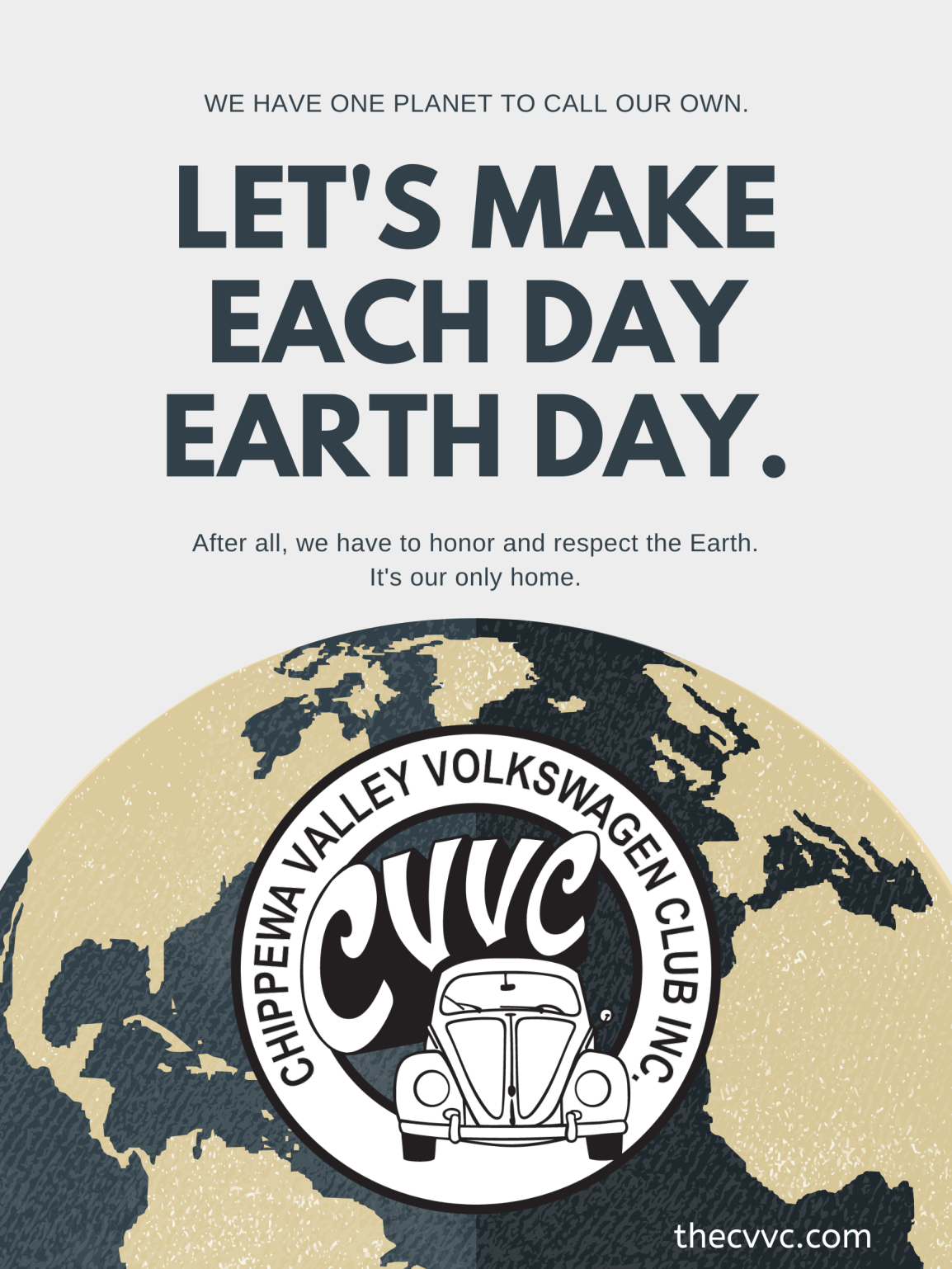 Every Day Earth Day Whether by air or water, we hope you enjoy the ride! Share this: Click to share on X (Opens in new window) X Click to share on Facebook (Opens in new window) Facebook More Click to email a link to a friend (Opens in new window) Email Like Loading... Related Published by Chippewa Valley Volkswagen Club, Inc. (CVVC) The CVVC is a grassroots not-for-profit club for Volkswagen enthusiasts run by volunteer enthusiasts in the Chippewa Valley of Wisconsin, USA. View all posts by Chippewa Valley Volkswagen Club, Inc. (CVVC)