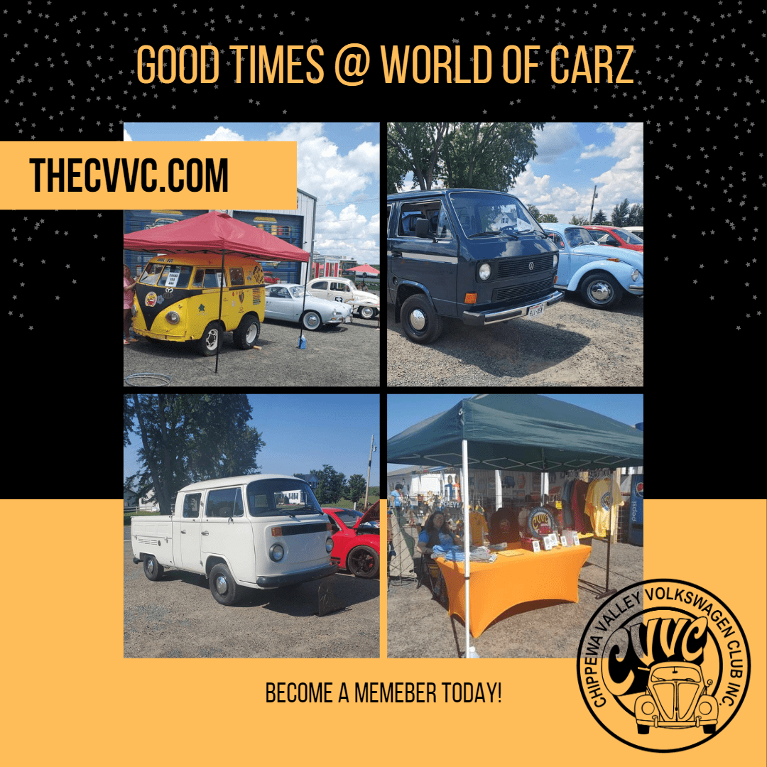 Stanley, Wisconsin may be a bit out of the way for you, but a stop at the World of Carz is worth the trip! We recently attended their All Volkswagen show and had a blast… Our next Club event will be Camp Eleva at the end of August. Members will have a meeting at the end of July, so join now to get the details and get involved.