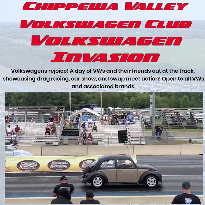 The Chippewa Valley Volkswagen Club (CVVC) is proud to host a Volkswagen Car Show, Camping, and SWAP as part of the inaugural Volkswagen Invasion at Rock Falls Raceway in Eau Claire, WI on Saturday, September 6, 2025.